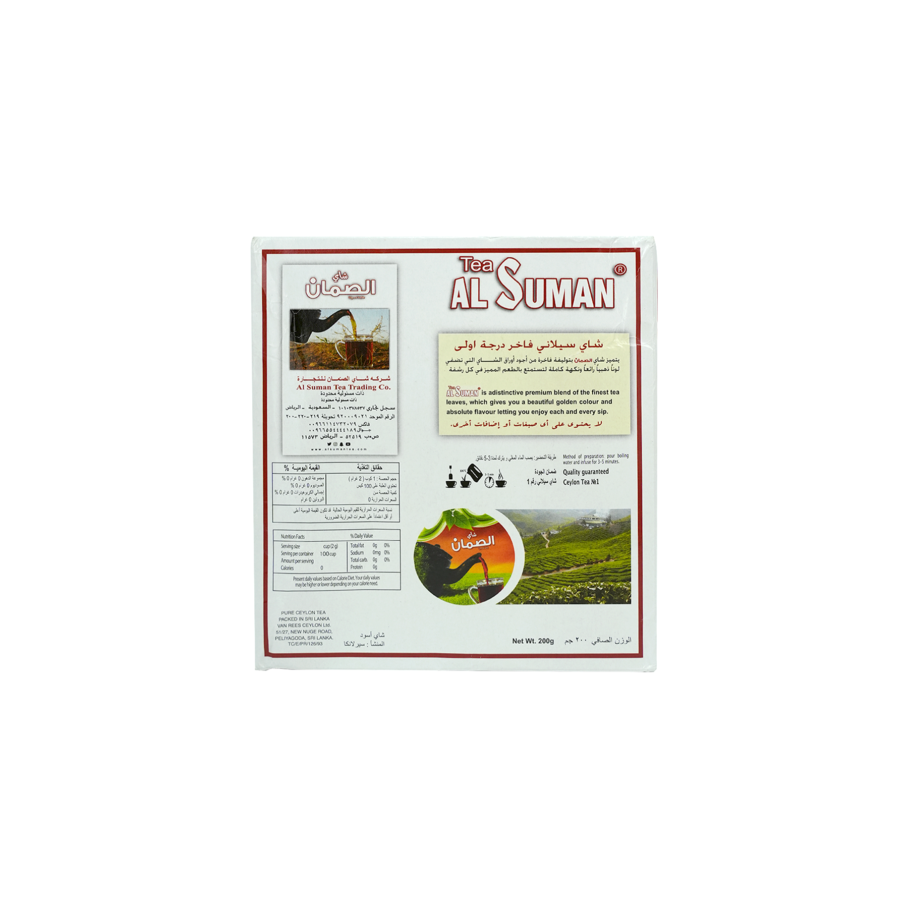 استمتع بفخامة شاي الصمان الفاخر، والذي تم اختياره بعناية من أجود أوراق الشاي. استمتع بالمذاق الرائع والفوائد الصحية العديدة لهذا الشاي عالي الجودة. دلل نفسك بفنجان من شاي سومان الفاخر وارتق بتجربة شرب الشاي لديك.